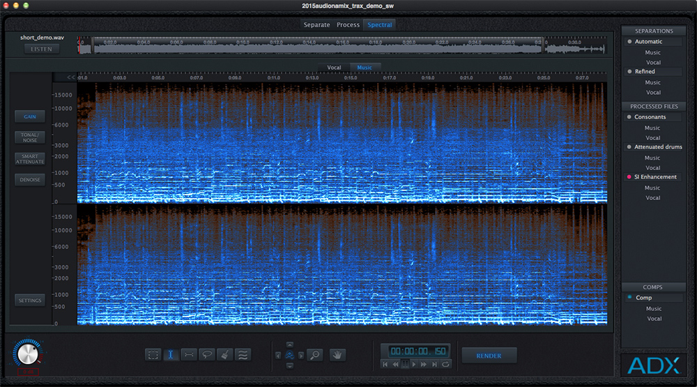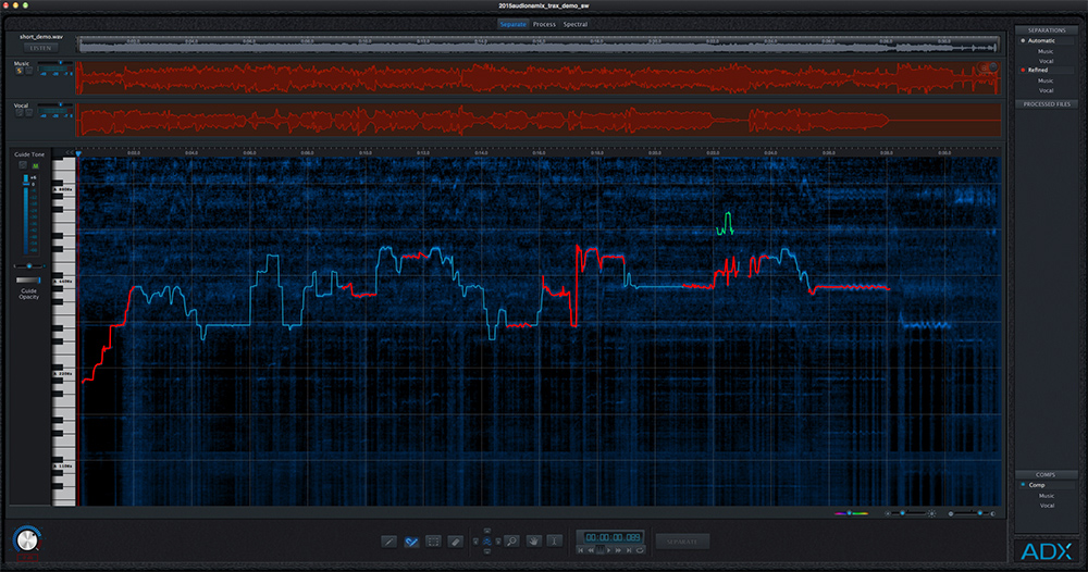 「AUDIONAMIX」は、同社が生み出した楽曲中の「ボーカル / メロディ」と「伴奏」を分離する“ADX”テクノロジーを搭載したソフトウェアを展開しております。その代表的なソフトウェアとして、高い品質で分離する「TRAX」「TRAX PRO」や、“ADX”テクノロジーにより楽曲中の「ボーカル」の音量や定位(パン)を調整可能な「VVC / VOCAL VOLUME CONTROL」などがございます。特に「TRAX」「TRAX PRO」は、オーディオファイルを読み込むだけの「自動分離」機能のほか、分離のための多数の機能を搭載し、本来非常に高い技術が必要な作業を、より手軽に、より短時間で実現できるようになっております。
