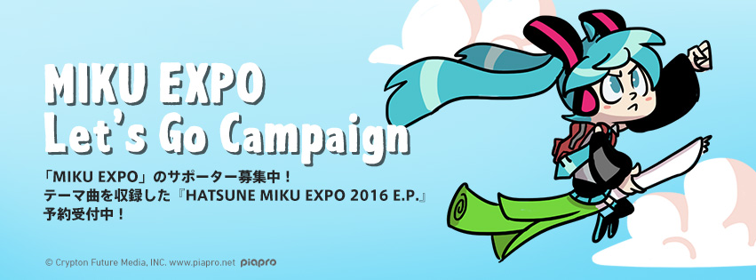 クリプトン・フューチャー・メディア株式会社(本社:北海道札幌市、代表取締役:伊藤博之)は、2015年12月2日(水)より、世界からサポーターを募集する企画『MIKU EXPO Let's Go キャンペーン』を開始致しました。