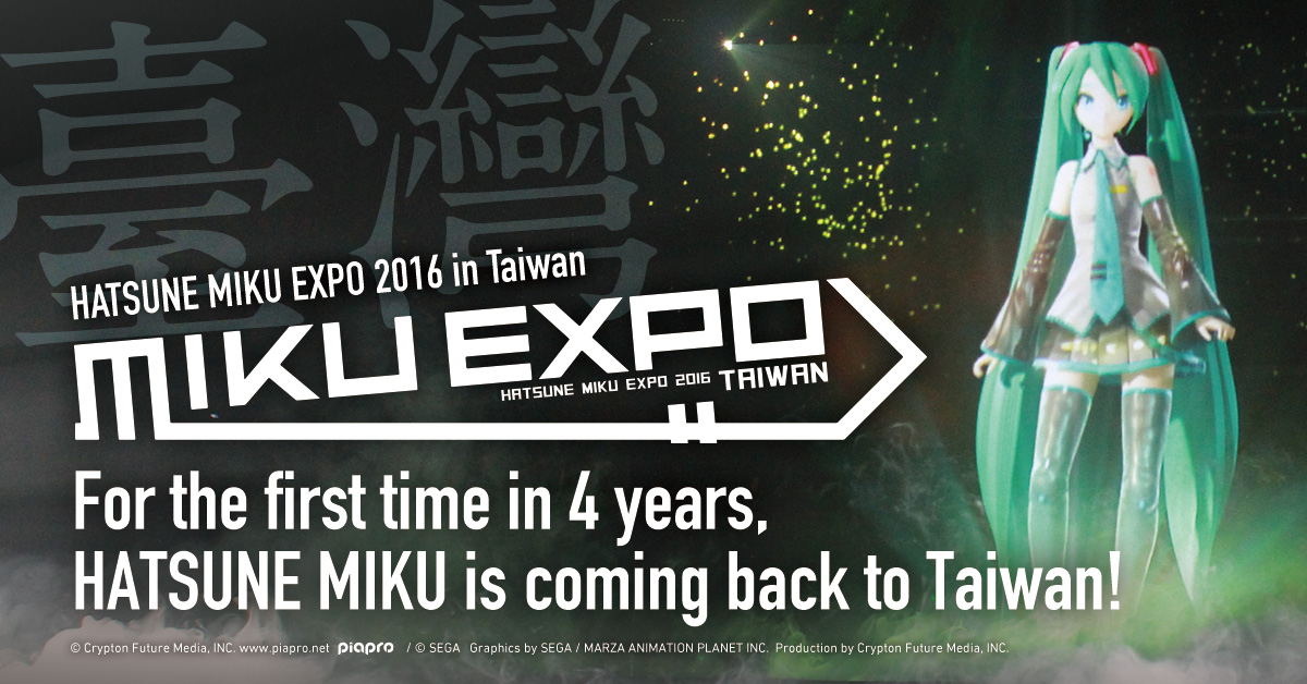 クリプトン・フューチャー・メディア株式会社(本社:北海道札幌市、代表取締役:伊藤博之、以下「クリプトン」)は、2016年6月に台湾で「HATSUNE MIKU EXPO 2016 in Taiwan」を開催することを決定いたしました。旭本国際実業有限公司の主催、台湾創世記全球娯楽股份有限公司の協力により実施いたします。
