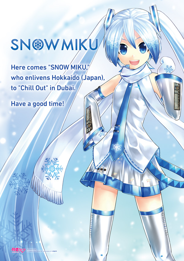 この度、現地財閥「シャラフグループ」が運営するショッピングモール内のアイスカフェ“Chillout Ice Lounge Dubai”で、「雪ミク」とのコラボレーション展開を行うことが決定し、7月20日(水)から雪ミクや北海道の観光コンテンツの発信を開始、今後は雪ミク関連製品の販売などを予定しております。