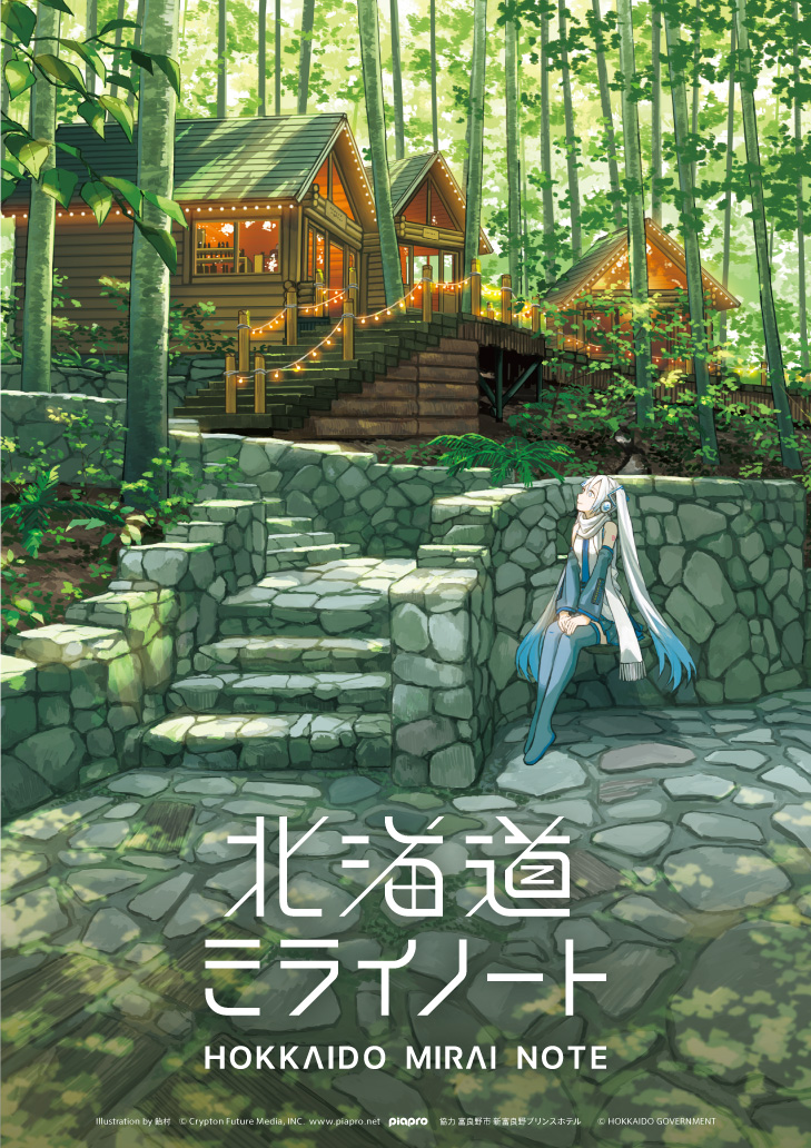 このサイトのガイド役として、北海道を応援するキャラクター、雪ミクが「北海道ミライ大使」に任命されています。イラストレーターの飴村氏によるメインビジュアルでは室蘭市の地球岬を、サブビジュアルでは富良野市のニングルテラスをフィーチャーしています。