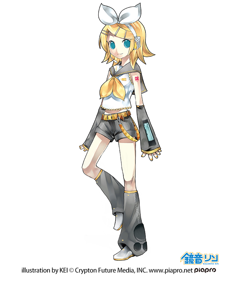 大きなリボンを着けたブロンドボブヘアが特徴的な、14歳の女の子のバーチャル・シンガーです。2007年12月27日に最初のソフトウェアを発売しました。同ソフトウェアには「鏡音レン」の歌声が一緒に収録されています。