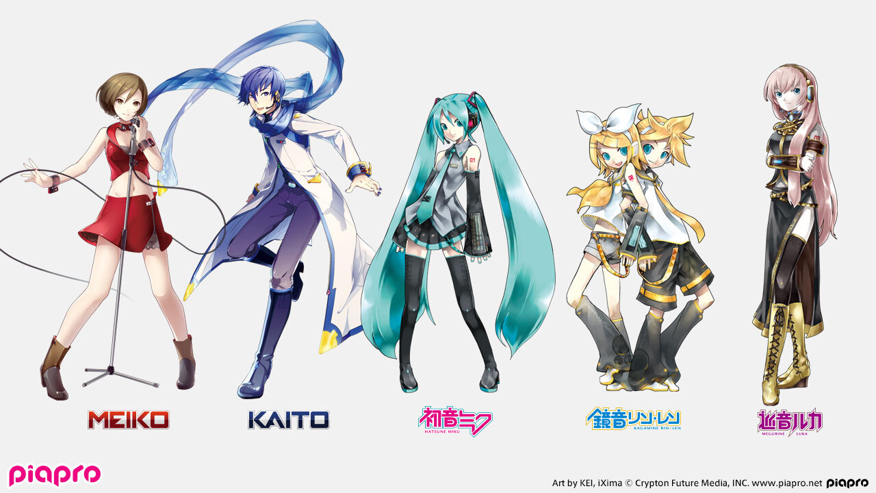 「初音ミク」「鏡音リン」「鏡音レン」「巡音ルカ」「MEIKO」「KAITO」の総称です。全員、クリプトン・フューチャー・メディア株式会社が手がけたバーチャル・シンガーソフトウェアのキャラクターです。