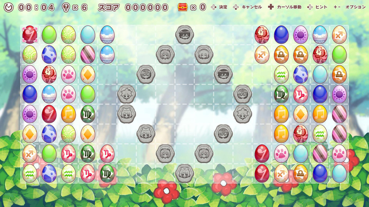 In “Hatsune Miku Connecting Puzzle TAMAGOTORI,” players connect eggs of the same pattern with a line that bends twice or less to clear the eggs. When all of the eggs are cleared, the stage is completed and the player can reveal 1 illustration panel. Revealing 25 panels will complete the illustration for the player to enjoy, and the game has a total of 200 stages.