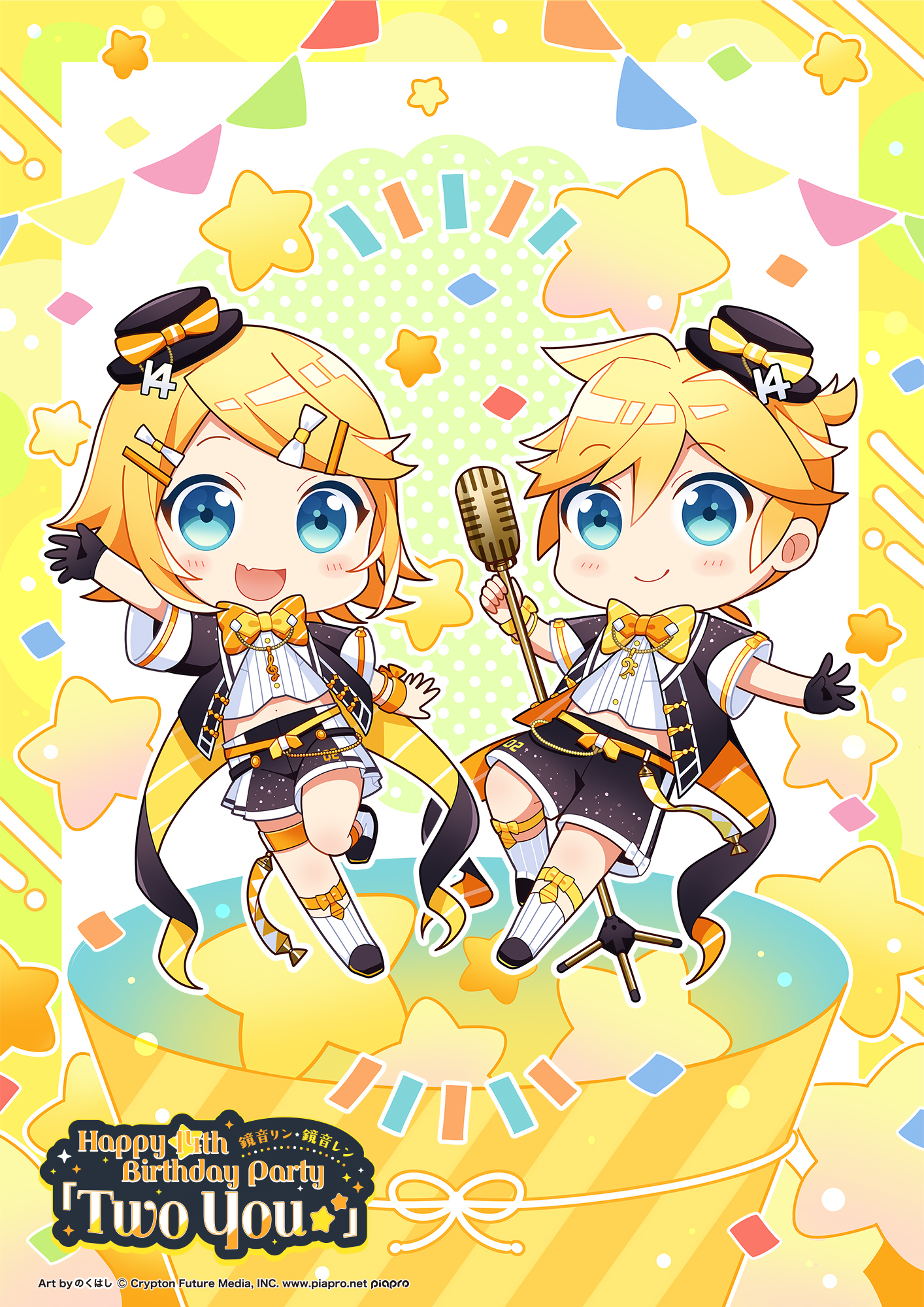 『鏡音リン・レン Happy 14th Birthday Party「Two You☆★」』に関する情報は、下記公式WEBサイト・Twitterアカウントより、随時発信しております。14年間2人を支えてくださった皆様への感謝を込めて展開してまいりますので、『鏡音リン・レン』のメモリアルな14周年を一緒にお祝いしましょう!
