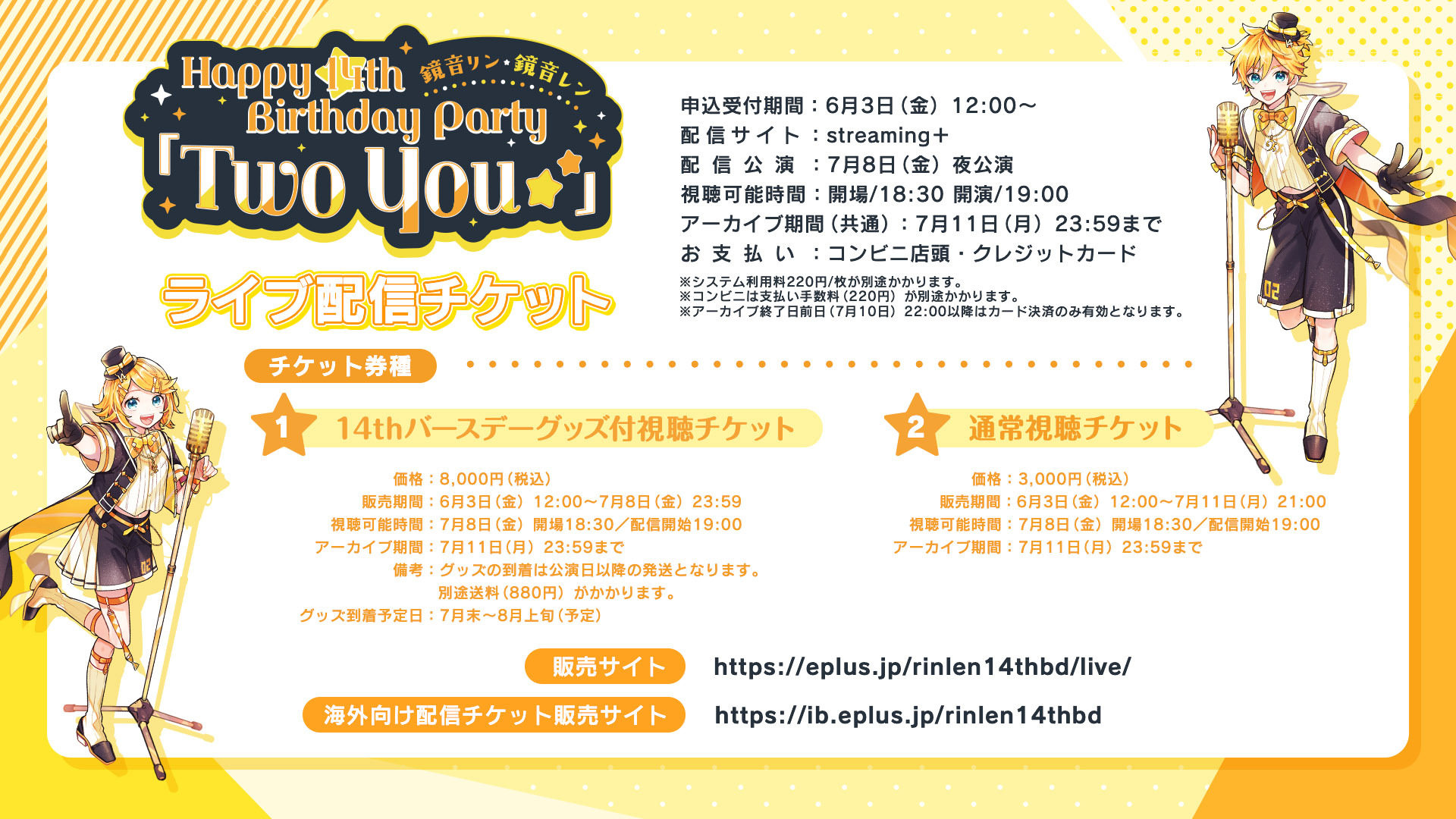 視聴チケット販売サイト(海外向け):https://ib.eplus.jp/rinlen14thbd ※通常視聴チケットのみ