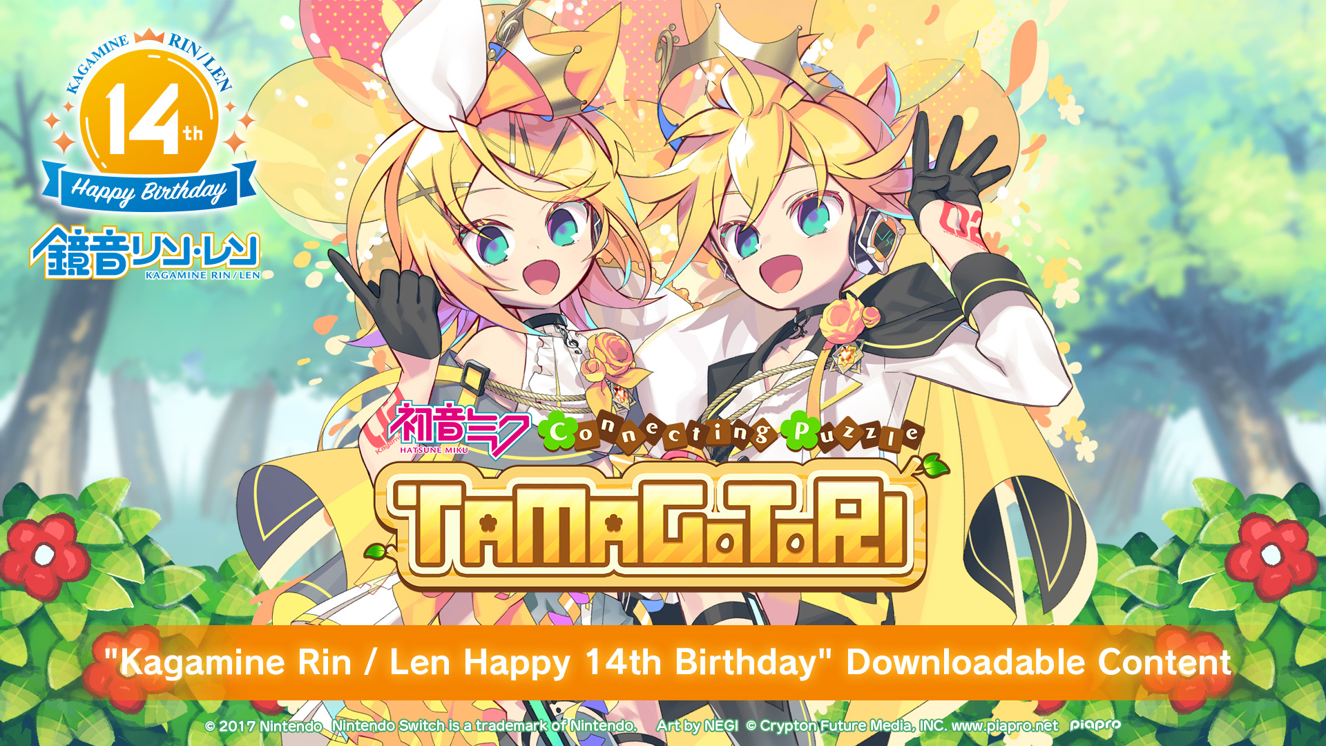 Crypton Future Media, INC. (Head Office: Sapporo, Hokkaido, Japan; CEO: Hiroyuki Itoh) has released the second DLC “Kagamine Rin / Len Happy 14th Birthday” for “Hatsune Miku Connecting Puzzle TAMAGOTORI”. The DLC is now available on Nintendo Switch, and purchasable for 500 JPY. Please check out the new trailer on the official Hatsune Miku YouTube channel.