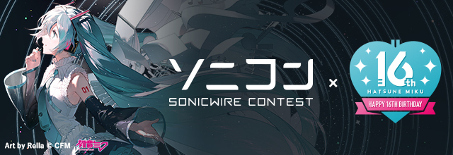 クリプトン・フューチャー・メディア株式会社(本社:北海道札幌市、代表取締役:伊藤博之、以下クリプトン)は、運営するデジタルクリエイター向けダウンロードストア『SONICWIRE(ソニックワイヤ)』が主催するクリエイター応援企画の一環として、楽曲コンテスト「ソニコンコラボ: -初音ミク Happy 16th Birthday- 編」を開催いたします。応募期間は、2023年3月15日18:00(水)~2023年5月31日(水)23:59まで。歌声合成ソフトウェア『初音ミク』を用いた楽曲を募集いたします。5分以内の楽曲であれば、音楽ジャンル・歌詞の言語は不問です。ふるってご応募ください。