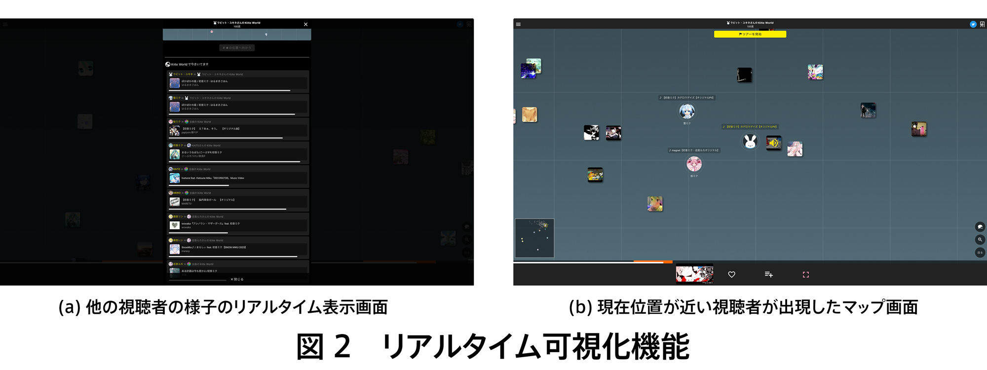 以上の「リアルタイム可視化機能」により、従来は困難だった、他の視聴者が音楽発掘をしている様子をリアルタイムに見ながらさまざまな楽曲や視聴者に興味を持つことが可能となった。