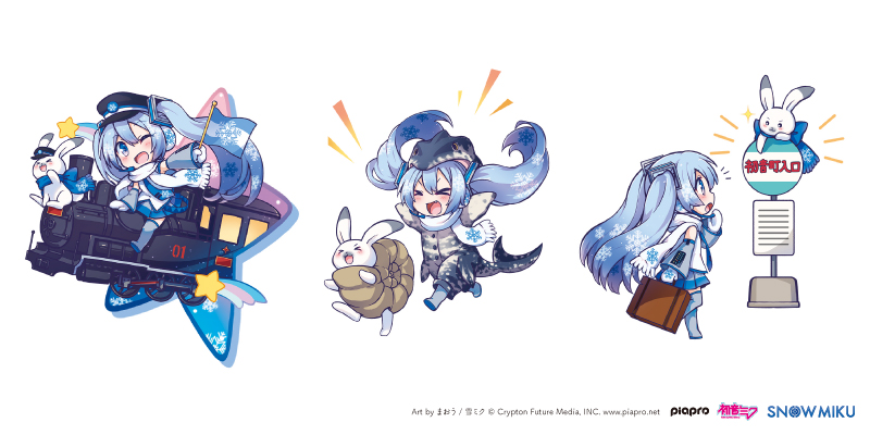 クリプトン・フューチャー・メディア株式会社が展開する”北海道を応援するキャラクター”。2010年の「さっぽろ雪まつり」で”真っ白い『初音ミク(https://piapro.net/pages/character)』の雪像”を作ったことをきっかけに誕生した。現在は北海道を盛り上げる各種取り組みのアンバサダーを務め、企業やキャラクターとのコラボレーションを行うなど、応援の場を多方面に広げている。また『雪ミク』が主役のフェスティバル「SNOW MIKU」を毎年北海道で開催していて、そのフェスティバルで『雪ミク』が着る衣装デザインは、毎年テーマに沿って公募している。2024年は「北海道の冬をイメージした"ごちそう"」をテーマとした衣装を着て展開する。