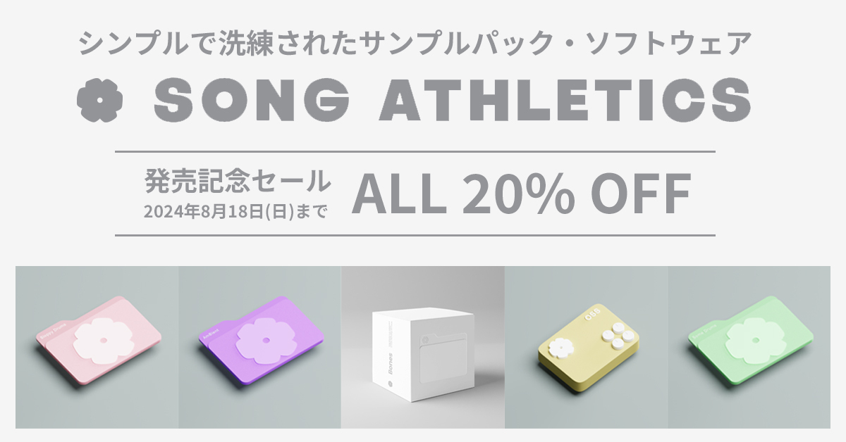 クリプトン・フューチャー・メディア株式会社(本社:北海道札幌市、代表取締役:伊藤博之)は、2024年8月5日(月)より、デジタルクリエイター向けダウンロードストア「SONICWIRE(ソニックワイヤ)」で「SONG ATHLETICS」社製サンプルパックおよびソフトウェアの取扱いを開始いたしました。クリエイター目線で作られたシンプルで洗練されたアプローチの5製品を、発売記念セールとして8月18日(日)23:59まで20%OFFでお買い求めいただけます。