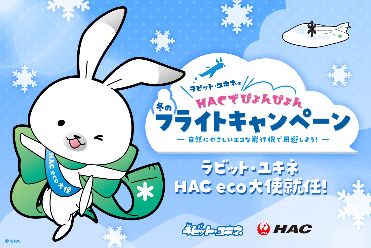 企画名:ラビット・ユキネのHACでぴょんぴょん冬のフライトキャンペーン~自然にやさしいエコな飛行機で周遊しよう!~