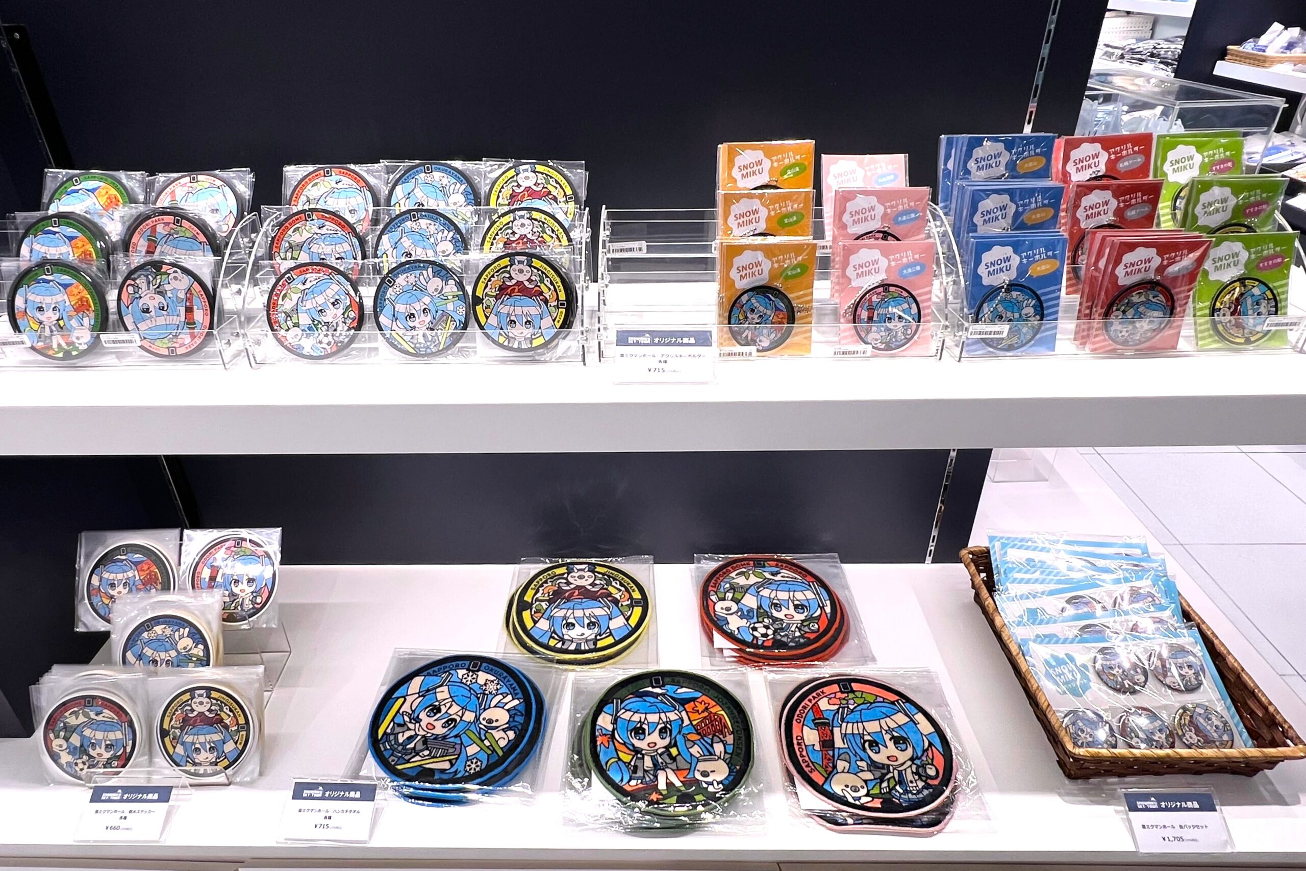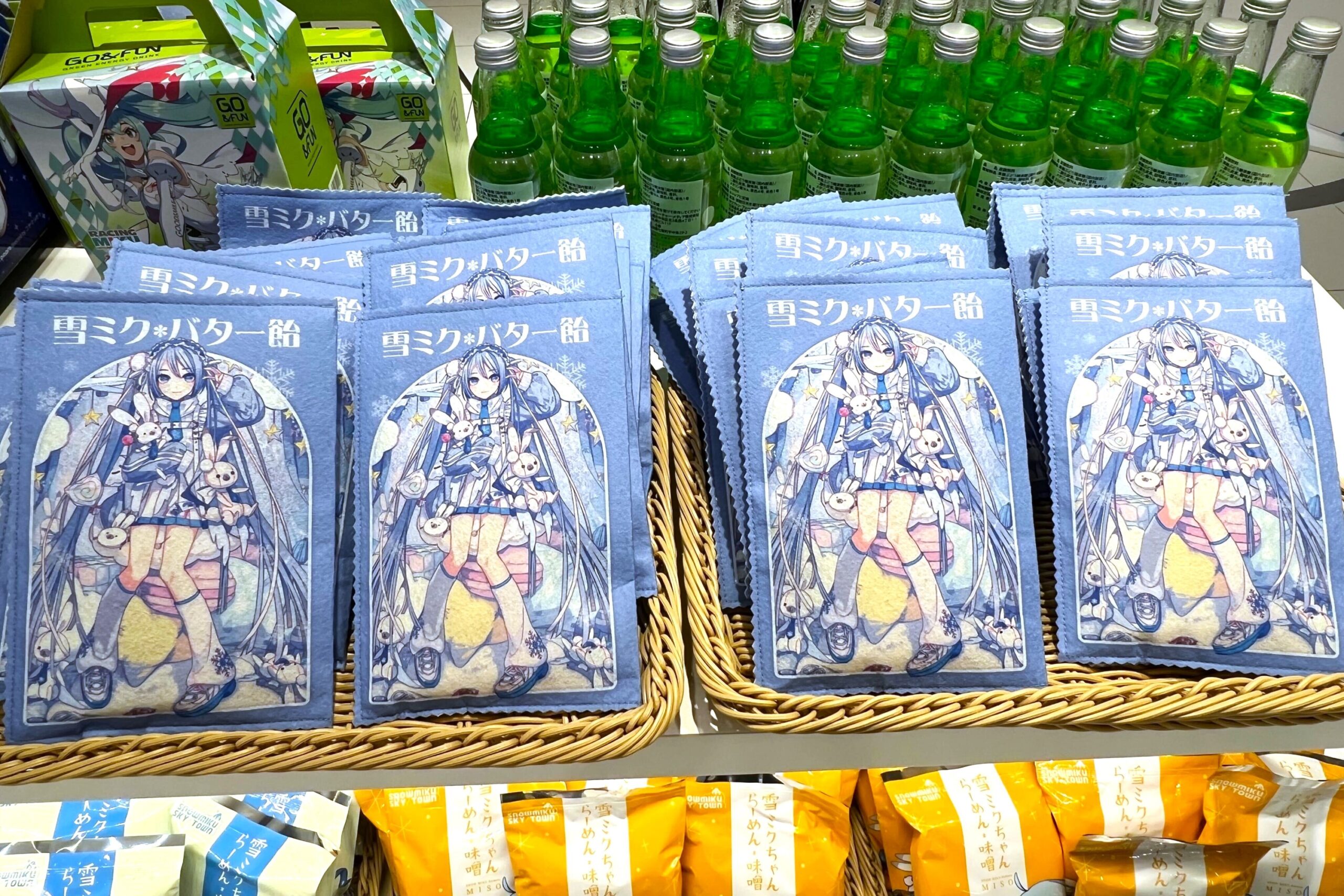 ショップでは『雪ミク』を中心としたキャラクター商品を取り扱っており、札幌市内5ヶ所に設置されている『雪ミク』マンホール蓋のご当地イラストを使用したグッズ、オリジナルパッケージのラーメンやバター飴といった、北海道旅行のお土産にぴったりの商品も取り揃えております。