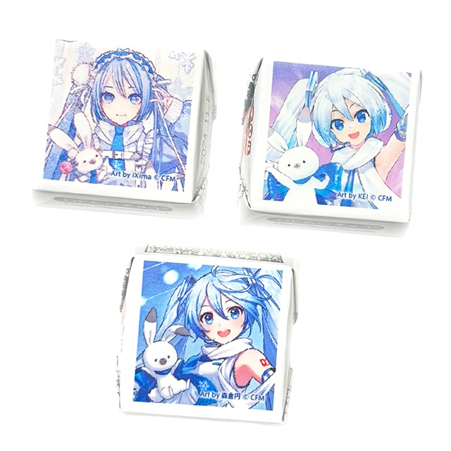 リニューアルオープン当日より、実店舗でのお会計時にノベルティとしてチョコレートを配布いたします。ノベルティは税込み2,000円ごとに1個のお渡しで、おひとりさま最大3個までとさせていただきます。店頭キャンペーンはノベルティが無くなり次第終了となります。また、オンラインストアでは『雪ミク』のポスターが20名に当たる抽選を実施いたします。森倉円さんとiXimaさんが「雪ミク スカイタウン」のために書き下ろしてくださったビジュアルを使用した大判ポスターで、当選者にはどちらかの絵柄がランダムで届きます。抽選は、2024年12月20日(金)~2025年1月31日(金)に、税込み5,000円以上をお買い上げいただいた方が対象です。