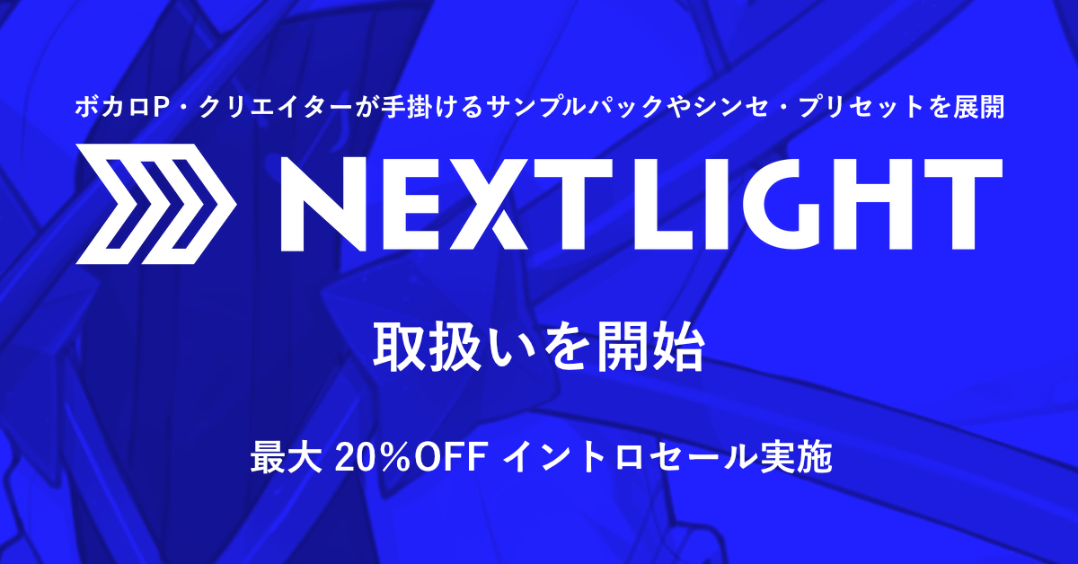 クリプトン・フューチャー・メディア株式会社(本社:北海道札幌市、代表取締役:伊藤博之)は、2025年4月23日(水)より、デジタルクリエイター向けダウンロードストア「SONICWIRE(ソニックワイヤ)」で「NEXTLIGHT(ネクストライト)」製品の取扱いを開始いたしました。5月21日(水)23:59までの期間限定で、最大20%OFFでお買い求めいただける発売記念セールを実施いたします。ぜひ音楽制作にお役立てください。