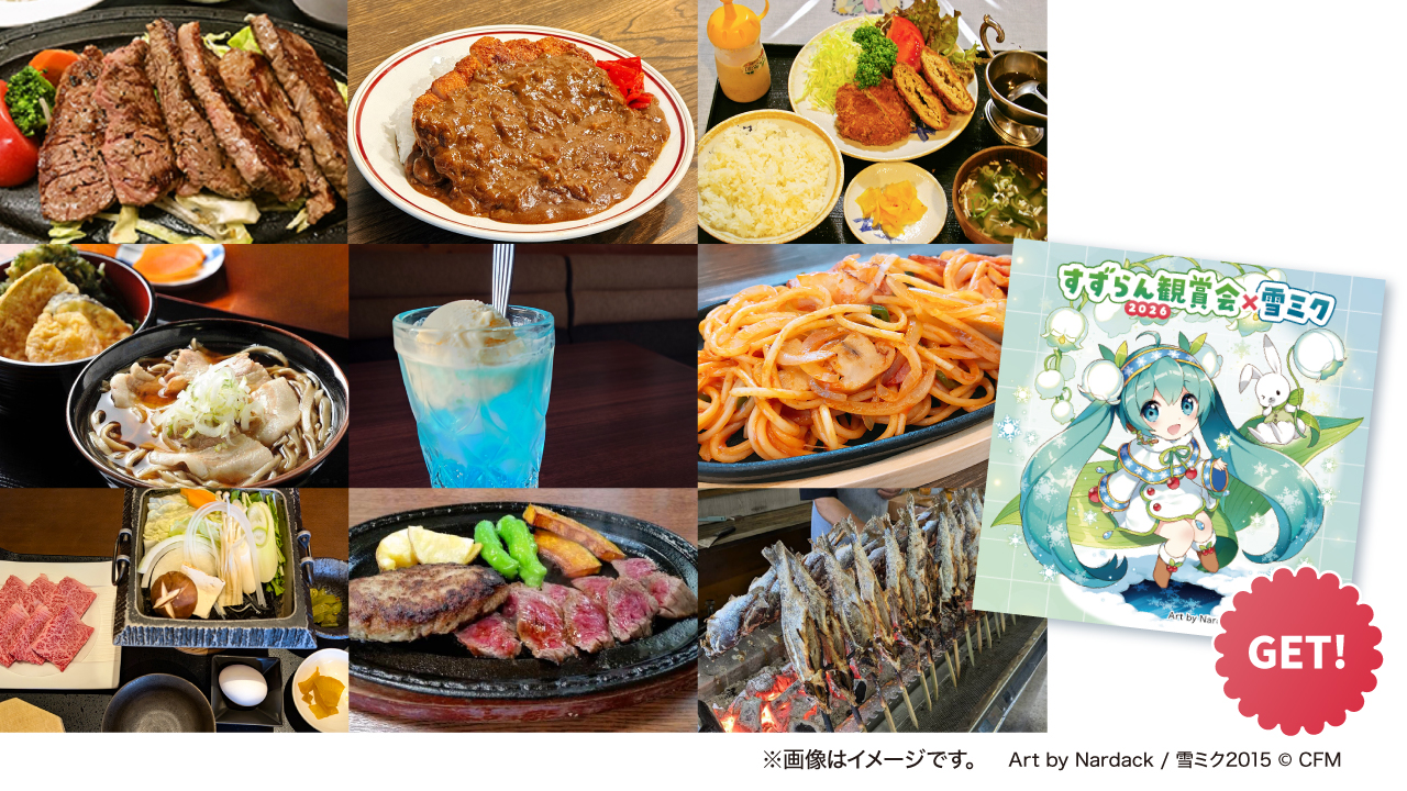 ・飲食店連携企画の特典である「雪ミク記念ステッカー」が写っていること