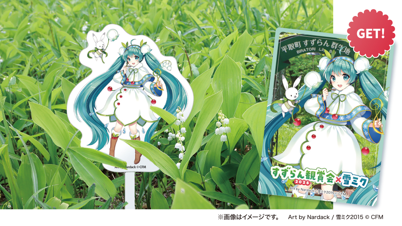 クリプトン・フューチャー・メディア株式会社(本社:北海道札幌市、代表取締役:伊藤博之、以下クリプトン)は、北海道を応援するキャラクター『雪ミク(初音ミク)』のコラボレーション展開を通して、北海道平取町(びらとりちょう)の「すずらん観賞会」を盛り上げる施策に協力することを発表いたします。2026年5月23日(土)~5月31日(日)まで開催される同観賞会の会場内にフォトスポットパネルが設置されるほか、雪ミク記念カード・ステッカーを入手できる参加型企画、コラボグッズの販売、平取町の特産品が当たるSNS投稿キャンペーンなどを展開。日本最大のすずらん群生地として知られる平取町の初夏の風物詩をお楽しみください。