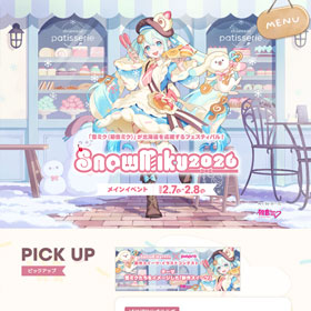 「雪ミク(初音ミク)」が北海道を応援するフェスティバル。2010年から毎年北海道で実施しており、2026年で開催17年目を迎える。今回の衣装テーマは「しあわせパティスリー」となっている。